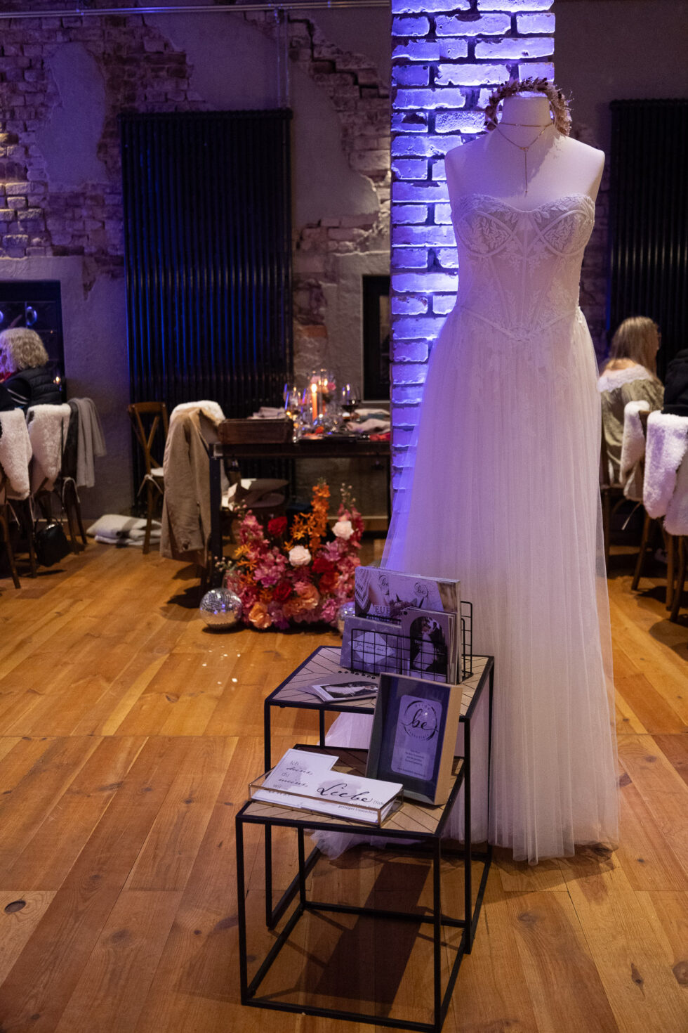 Ein Experiment mit künstlichen Blumen: Für dieses besondere Event wagten wir ein Experiment und griffen erstmals auf künstliche Seidenblumen zurück. Diese Entscheidung ermöglicht nicht nur eine Wiederverwendung des Blumenschmucks, sondern bietet auch eine tolle Alternative für Veranstaltungen, bei denen frische Blumen nicht möglich sind.