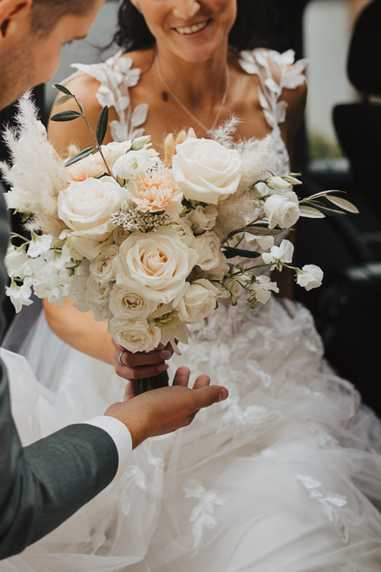 Ihr könnt euch im Rahmen des Wedding Designs entscheiden, ob wir eure Blumen machen sollen. Wir sprechen dann im Termin über Farben, Stilrichtungen und Blumenauswahl. Danach bestellen wir alles gezielt für euch für euren Hochzeitstag.