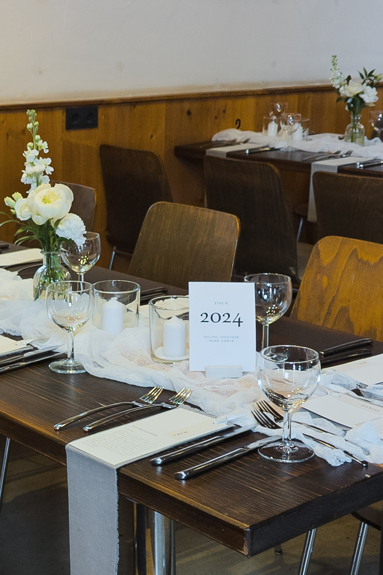 Der Tischläufer Charlène wird aus Käseleinen gefertigt, von uns selbst zugeschnitten.