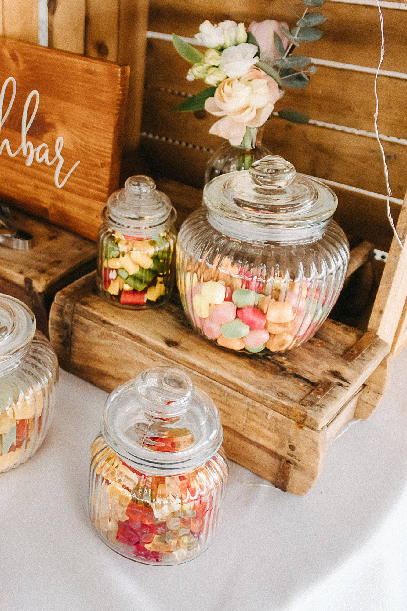 Die Vintage-Ziegelkisten sind alle ein wenig unterschiedlich. Sie bringen Charakter auf jede Festtafel und lassen sich unglaublich vielseitig einsetzen. Als Teil der Naschbar macht sie eine tolle Figur: zum Beispiel mit verpackter Schokolade gefüllt oder umgedreht als kleine Bühne für Gläser und Deko.